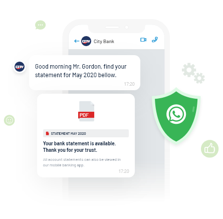 Me WhatsApp Business API ju mund të komunikoni në mënyrë të sigurt me klientët tuaj. Të gjitha mesazhet janë të koduara dhe transmetohen nga aplikacioni juaj tek klienti përmes WhatsApp Business API.